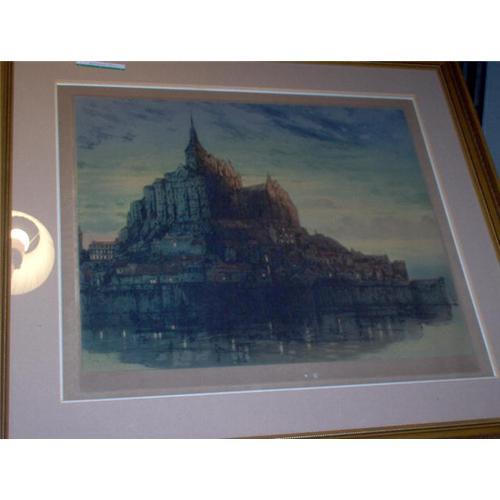 <table width="100%" border="0" cellspacing="0" cellpadding="4"><tr><td><em> </em></td></tr><tr> <td width="100%"> This is a strikingly beautiful image of one of the worlds most famous cathedrals. It is an original print and signed in pencil lower right. My best estimate is that it is a color aquatint. There is significant browning of the borders and may well pre-date my stated time frame. I have done no research at this time. Later. It is superbly matted and framed,obviously at a later time than when the print was made. </td></tr><tr> <td> </td></tr><tr> <td>Reference #: 229</td></tr><tr><td>Condition:good at least</td></tr><tr><td>Year:1900?</td></tr><tr><td>Country:France</td></tr><tr><td>Maker:indiscint signature</td></tr><tr><td>Height:21</td></tr><tr><td>Width:20</td></tr><tr><td>Title:Mount St.Michel</td></tr><tr><td>Type:Aquatint</td></tr><tr><td>Location:Louisiana,MO</td></tr></table>