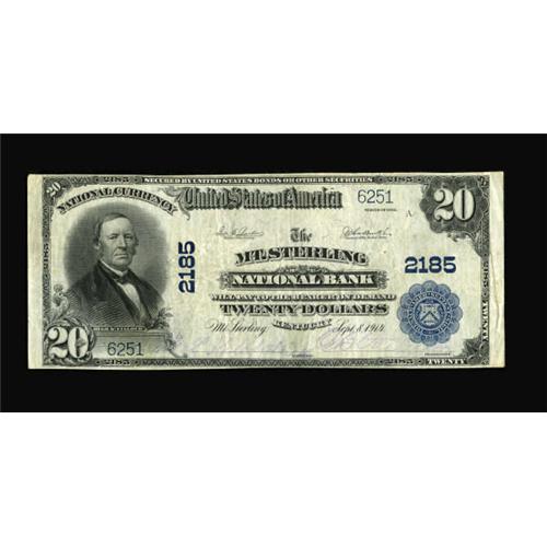 <B>Mount Sterling, KY</B></I> - $20 1902 Plain Back Fr. 657 <B>The Mt. Sterling NB</B></I> Ch. # 2185<BR> This is only the second $20 Plain Back to appear from this banking institution. The paper is most pleasing and bright. <B>Very Fine.</B></I><BR><BR><b>Shipping:</b> Coins & Currency (<a target="_blank" href="http://www.heritageauctions.com/common/shipping.php">view shipping information</a>)