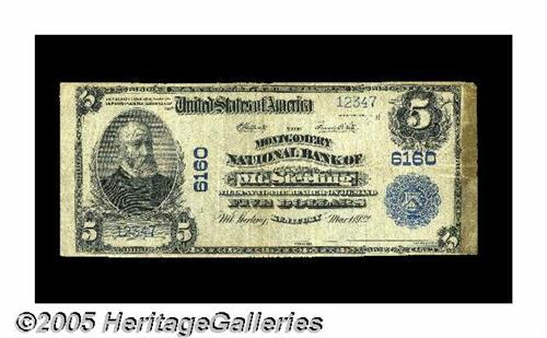 <B>Mount Sterling, KY</B></I> - $5 1902 Plain Back Fr. 608 <B>The Montgomery NB</B></I> Ch. # 6160<BR>A <B>Fine</B></I> "Fourth Charter" note with the 1922 date on the plate.