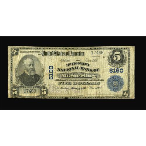 <B>Mount Sterling, KY </B></I>- $5 1902 Plain Back Fr. 608 <B>The Montgomery NB</B></I> Ch. # 6160<BR> This wholly original note has solid paper and the 1922 plate date. <B>Very Fine.</B></I><BR><BR><b>Shipping:</b> Coins & Currency (<a target="_blank" href="http://www.heritageauctions.com/common/shipping.php">view shipping information</a>)