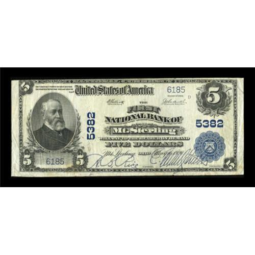 <B>Mount Sterling, OH</B></I> - $5 1902 Plain Back Fr. 607 <B>The First NB</B></I> Ch. # 5382<BR> Solid, ornate signatures adorn the bottom of this pleasing, mid-grade issue. <B>Very Fine.</B></I><BR><BR><b>Shipping:</b> Coins & Currency (<a target="_blank" href="http://www.heritageauctions.com/common/shipping.php">view shipping information</a>)