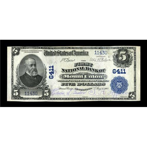 Mount Union, PA - $5 1902 Plain Back Fr. 598 The First