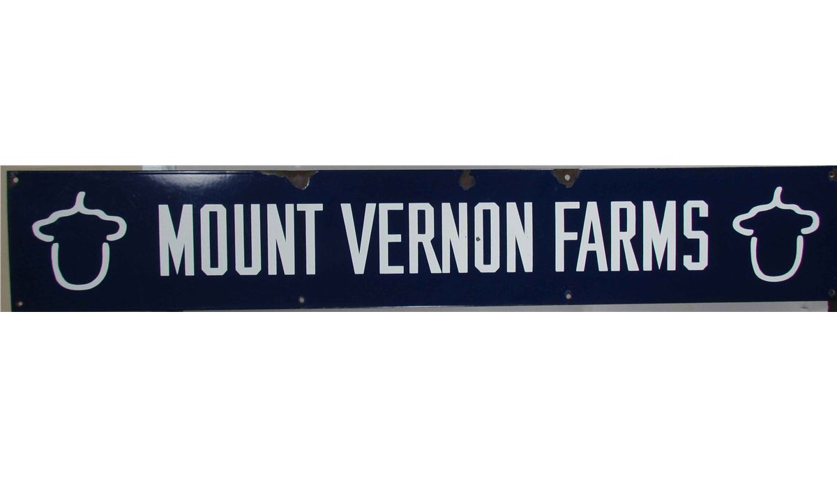 Mount Vernon Farms Porcelain Sign. Acorn motif. A couple of chips mostly around grommets otherwise very good condition. 48 X 8 inches.