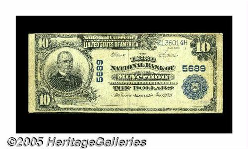 <B>Mount Vernon, IL</B></I> - $10 1902 Plain Back Fr. 633 <B>The Third NB</B></I> Ch. # 5689<BR>Considerably the scarcer of the two Mount Vernon banks which issued Third Charter examples. Evenly circulated <B>Fine+.</B></I>