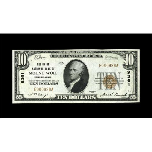 Mount Wolf, PA - $10 1929 Ty. 1 The Union NB Ch. # 9361