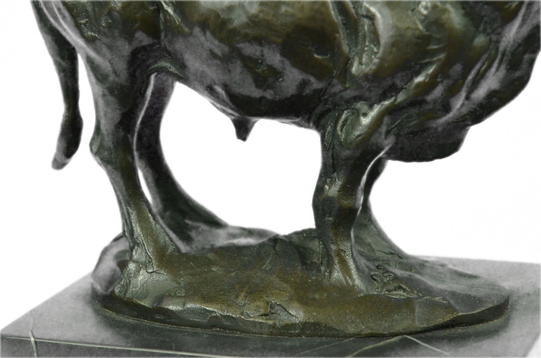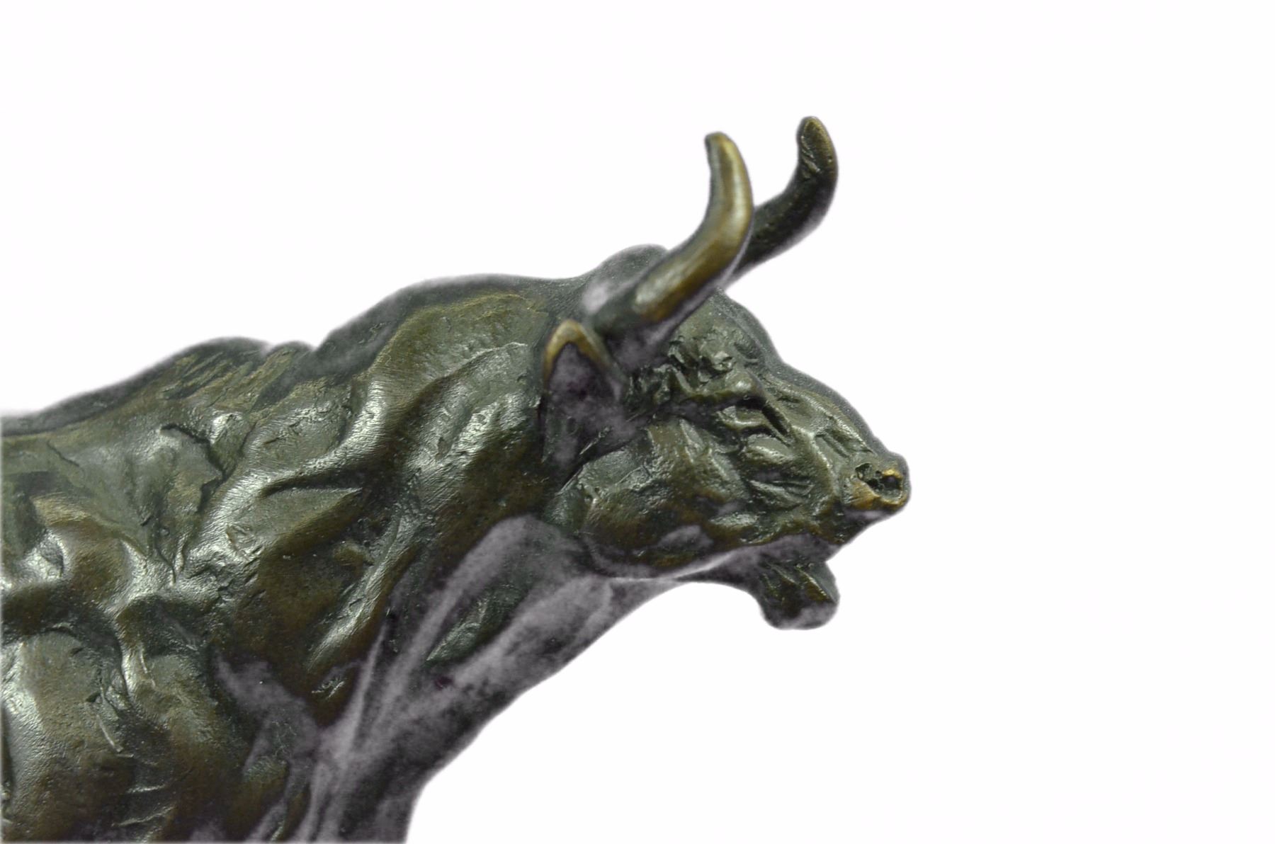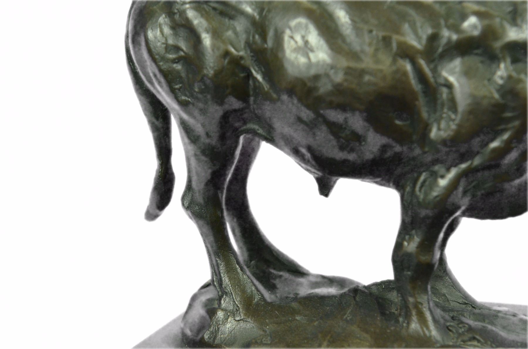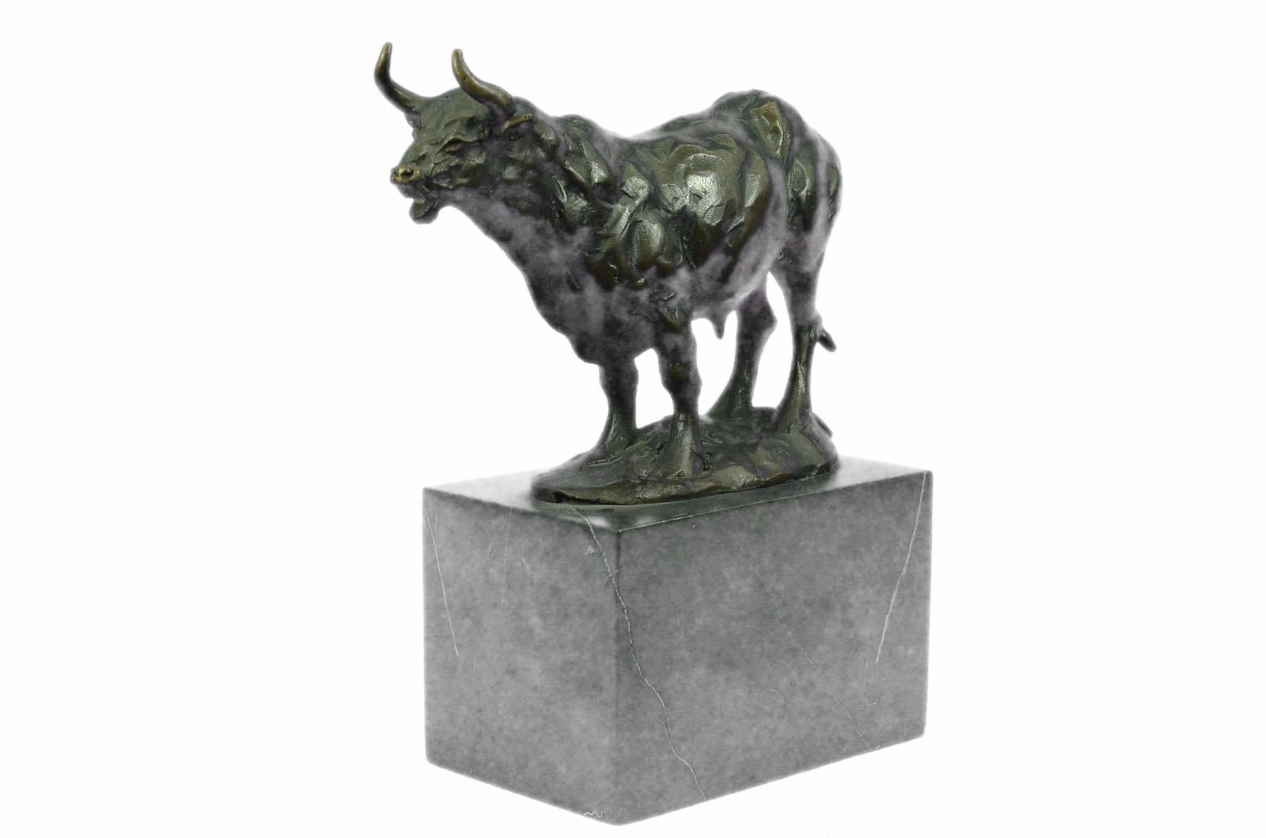 Anoa, Also Known As Dwarf Buffalo And Sapiutan, Are A Subgenus Of Bubalus Comprising Two Species Native To Indonesia; The Mountain Anoa Bubalus Quarlesi And The Lowland Anoa. Both Live In Undisturbed Rainforest, And Are Essentially Miniature Water Buffalo. They Are Similar In Appearance To A Deer, Weighing 150–300 Kilograms 330–660 Lb. This Amazing Sculpture Shows That Even If They Are Not The Largest In Size They Are Still Strong Creatures. Every Muscle On His Body Shows And Strength And Power, His Horns Are Slightly Turned Backwards And His Mouth Is A Little Open As If He Was Saying Something. This Sculpture Is Handmade And He Has A Gorgeous Two Tone Brown Patina. Bronze dimensions with marble base: Height 9 X Width 8 inches. Weight: 9 lbs.