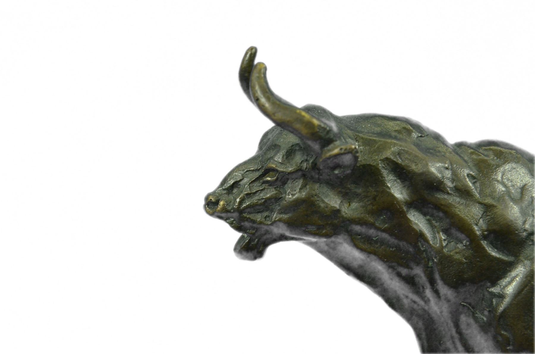 Anoa, Also Known As Dwarf Buffalo And Sapiutan, Are A Subgenus Of Bubalus Comprising Two Species Native To Indonesia; The Mountain Anoa Bubalus Quarlesi And The Lowland Anoa. Both Live In Undisturbed Rainforest, And Are Essentially Miniature Water Buffalo. They Are Similar In Appearance To A Deer, Weighing 150–300 Kilograms 330–660 Lb. This Amazing Sculpture Shows That Even If They Are Not The Largest In Size They Are Still Strong Creatures. Every Muscle On His Body Shows And Strength And Power, His Horns Are Slightly Turned Backwards And His Mouth Is A Little Open As If He Was Saying Something. This Sculpture Is Handmade And He Has A Gorgeous Two Tone Brown Patina. Bronze dimensions with marble base: Height 9 X Width 8 inches. Weight: 9 lbs. Please Note: This is a reproduction bronze sculpture from the original molded and signed. This featured bronze sculpture is a recast after the original, and has been done recently. This 100% bronze sculpture is an abstract piece certain to be a conversation piece.Please Note: This is a reproduction bronze sculpture from the original molded and signed. This featured bronze sculpture is a recast after the original, and has been done recently. This 100% bronze sculpture is an abstract piece certain to be a conversation piece.