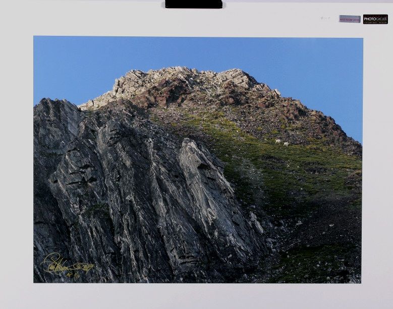 This is an original work of art photographic giclee print that Rein shot in 2006. The piece shows great details of the Spanish Peaks area with two Mountain Goats crossing the rocky terrain. This is an Artist Proof numbered 1/10. The piece is hand signed and titled by the artist. Rein is a Bozeman, Montana artist whose works hang in many Montana Homes. This is shrink wrapped backed on foam core that measures 33"x41.5". The artwork measures 25 5/8"x34 3/8"