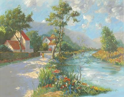 Mountain Hamlet is a Limited Edition Serigraph on paper from a SOLD OUT Edition by Christian Title. Hand Signed with Publisher's Certificate of Authenticity! Measures appx. 29.5 x 35 (border); 24 x 30 (image).