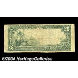 Mountain Lake, MN - $20 1902 Plain Back Fr. 652 The First NB Ch. # 9267This one bank town in Cottonwood is rare in both large and small size, with less than a half-dozen pieces reported in large size in the Kelly reference. This example is moderately circulated but still pleasing, with blue pen signatures and no major flaws. Very Good-Fine. <BR><BR><B>Important notice:</B> Heritage usually auctions material at the rate of 200-250 lots per hour. On some occasions eBay Live bid software or the Internet may not be able to keep up with the pace of the auction. We recommend placing a realistic absentee bid now as insurance to avoid disappointment. Occasionally the auctioneer may eliminate or reject an eBay Live bid, and the auctioneer may also reopen a lot after the close of the eBay live bidding (usually because we missed an audience bid), and may reject your bid even if it shows you as the winning bidder. By bidding via eBay Live, you agree that Heritage may award the lot to another bidder at its sole discretion under the circumstances described above or any other reasonable circumstances. Since eBay bids are not shown to us until we open the lot on the floor, we treat those bids just like floor bids. In most cases the floor responds before the eBay bid is presented to us, due to Internet lag time, so for consistency we have made it a policy that floor bids are always considered first over tie eBay live bids. Also please note that all Heritage lots purchased through eBay Live carry a 20% Buyer's Premium. Please make sure you read the Terms and Conditions before you bid. <BR><BR><B>IMPORTANT ANNOUNCEMENT ABOUT RESERVES:</B> Heritage now divulges all reserves on its web site 7 days before every auction. If you want to know whether the reserve on this lot has been met, and if not, what the reserve amount is, please visit this lot page on the HeritageCoin.com web site, or email: bid@HeritageGalleries.com