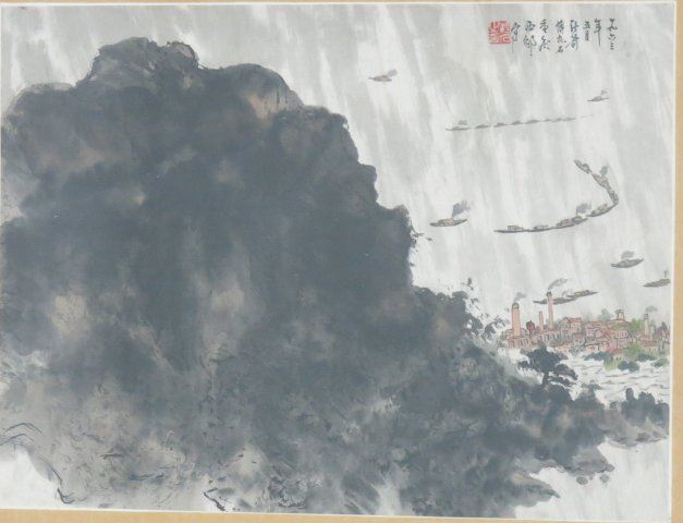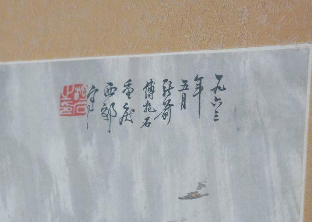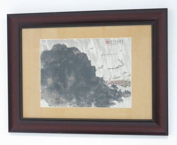 Chinese watercolor. Framed. Artist stamped (not guaranteed). Approx. 13" x 17 1/2" without frame, 23 1/8" x 31 1/4" with frame. Good condition.
