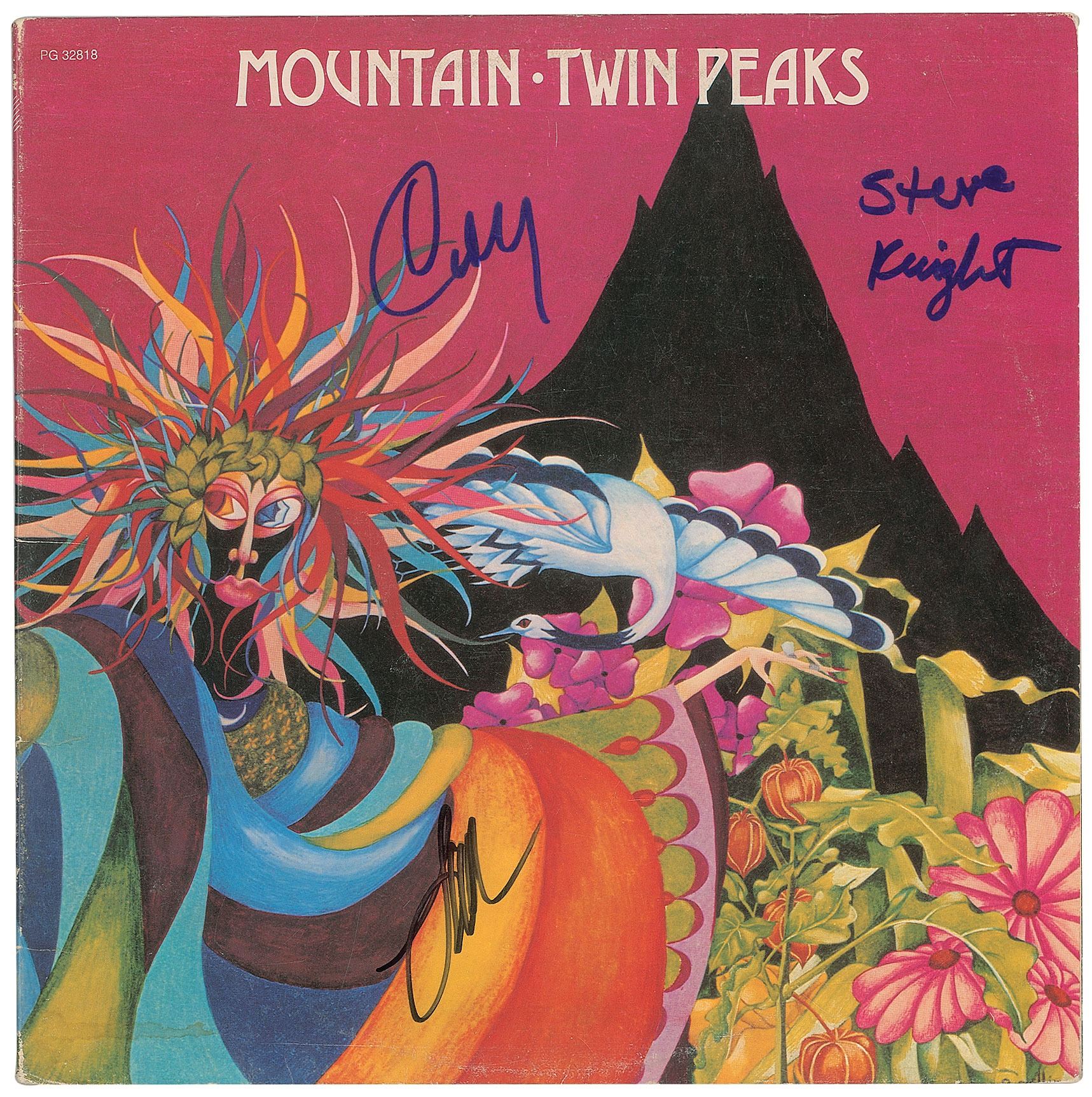 Twin Peaks album by Mountain, signed on the front cover in blue or black felt tip by Leslie West, Steve Knight, and Corky Laing. In fine condition. The record is not included.