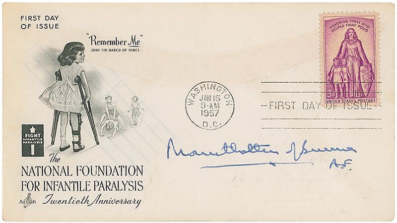 FDC with a cachet honoring the National Foundation for Infantile Paralysis, signed in fountain pen “Mountbatten of Burma, A. F.” In fine condition, with light toning and central vertical fold.