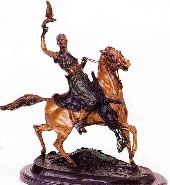 "Mounted Falconer" Bronze Sculpture - After Mene - Beautiful Patina/Museum Brown Finish - Mounted On A Fine Italian Marble Base - Beautifully Detailed - Signed - Mint Condition - 31"H X 24"W - Lost Wax Cast Bronze