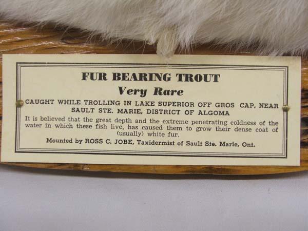 Mounted Fur Bearing Trout. Mount measures approx. 15''Lx7''W. Buyers Pay Actual Shipping and Handling Charges(see terms and conditions for more information).