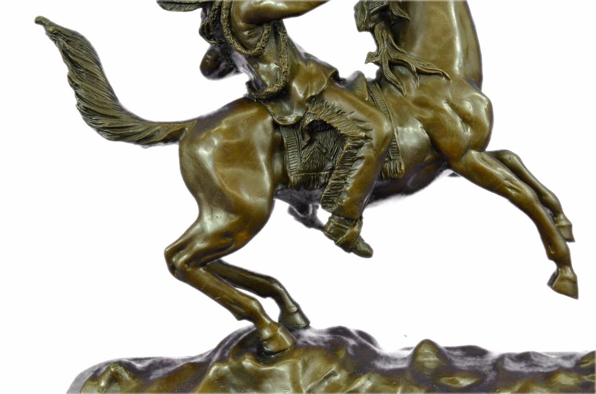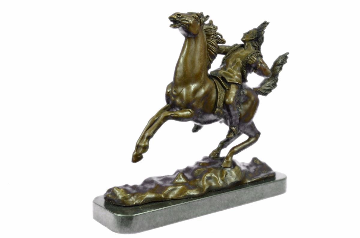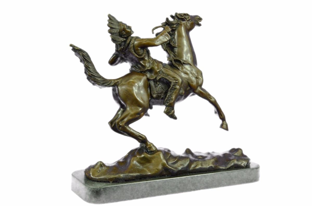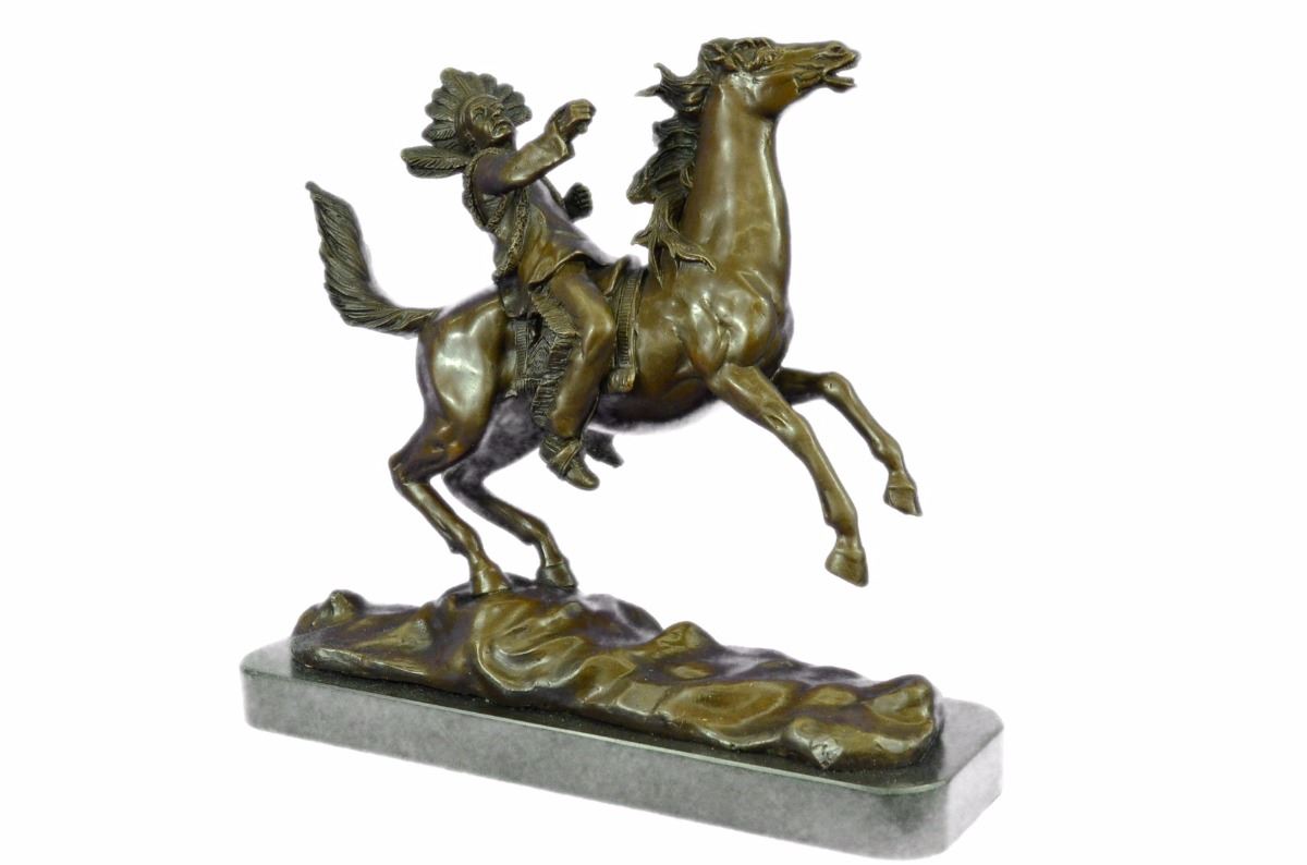 This Monumental Sculpture Of A Mounted Indian Chief Was Sculpted By Artist Carl Kauba (Austrian, 1865-1922). Kauba Was Famed For His Portrayals Of Iconic Images Of The American Frontier, Which Is Particularly Remarkable Since He Never Had The Opportunity To View His Subject Matter In Person. Please Click On The Thumbnail Images Above To See Additional Views And Click On Any Image To Enlarge It. We Have Cast Mounted Indian Chief In Our Own European Art Foundry Using Pure Bronze. The Sculpture Is Finished With A Classic Patina In Tones Of Browns And Black That Enhances The Beauty Of The Horse And The Rocky Landscape Upon Which It Proudly Stands. Mounted Onto A Black Marble Base. Bronze Dimensions With Marble Base: Height 12 X Width 14 inches. Weight: 20 Lbs. This Is Not An Original Of His Work But A Recent Reproduction.