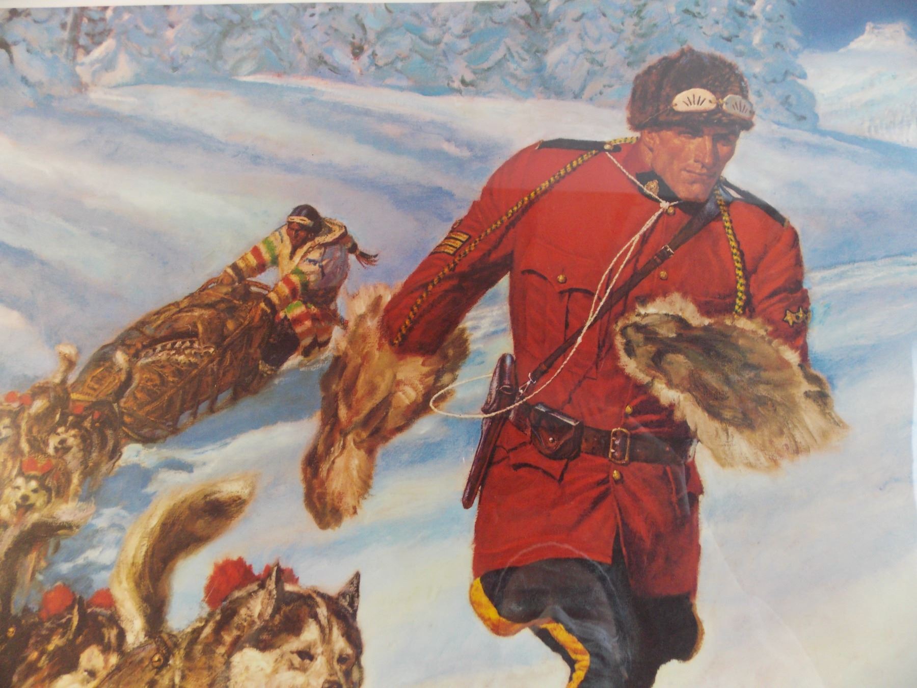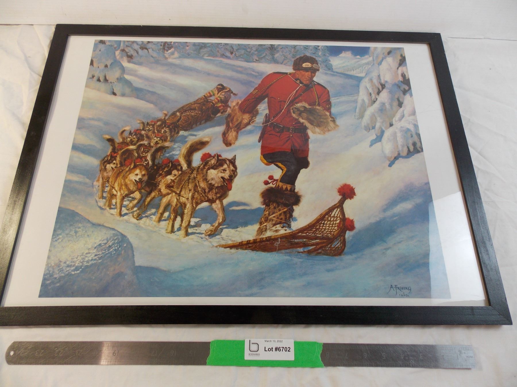 Mountee Snowshoeing with sled dogs - A. Friberg print in plastic frame - 29x21
