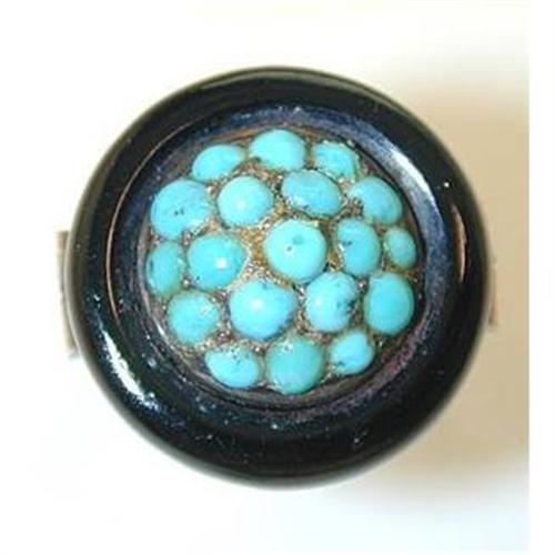 <tr><td>Title:Mourning Ring Turquoise Onyx 14k Victorian </td></tr>