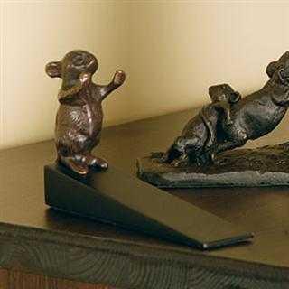 Mouse Doorstop - 4"x6.5"x1.5" - Brass & Wood
