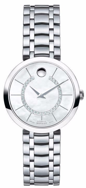Model: 606920 - CASE = [Material:Stainless Steel], [Case Diameter:27], [Bezel:Fixed], [Case Back:Skeleton], [Water Resistant:30 Meters - 100 Feet], [Crystal:Scratch Resistant Sapphire],; DIAL = [Color:Mother of Pearl],; MOVEMENT = [Type:Automatic], [Crown:Push In],; BAND = [Clasp:Folding], [Type:Stainless Steel], (Usually ships in 1 to 2 weeks.)