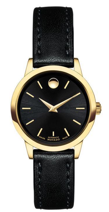 Model: 606925 - CASE = [Material:Stainless Steel and Yellow PVD], [Case Diameter:27], [Bezel:Fixed], [Case Back:Skeleton], [Water Resistant:30 Meters - 100 Feet], [Crystal:Scratch Resistant Sapphire], DIAL = [Color:Black], MOVEMENT = [Type:Automatic], [Crown:Push In], BAND = [Clasp:Tang], [Type:Black Leather], (Usually ships in 4 to 8 weeks.)