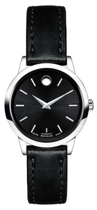 Model: 606923 - CASE = [Material:Stainless Steel], [Case Diameter:27], [Bezel:Fixed], [Case Back:Skeleton], [Water Resistant:30 Meters - 100 Feet], [Crystal:Scratch Resistant Sapphire], DIAL = [Color:Black], MOVEMENT = [Type:Automatic], [Crown:Push In], BAND = [Clasp:Tang], [Type:Black Leather], (Usually ships in 1 to 2 weeks.)