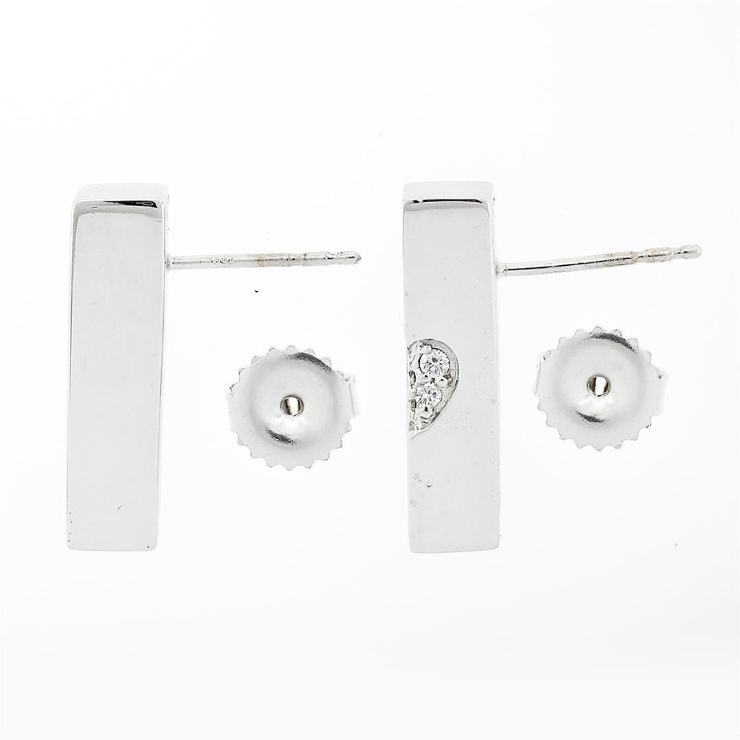 A designer movado solid 18k yellow gold earrings, with 12 round brilliant cut natural diamonds (F- VS1 ; 0.15ctw). The earrings measure approximately 19.20x5.06mm and weigh a total of 9.09 grams.