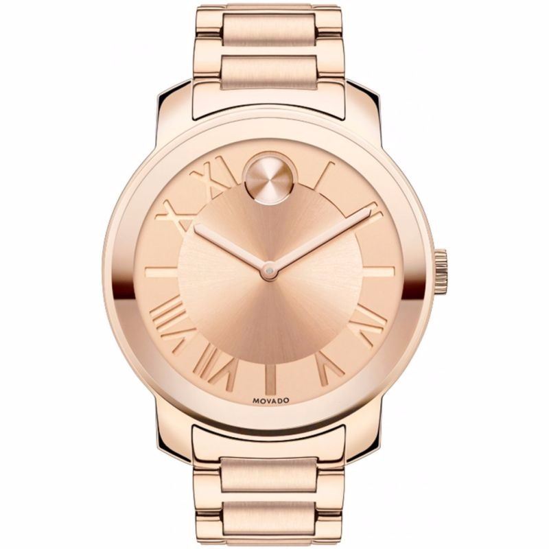 Model: 3600199 - CASE = [Material:Rose Gold Ion Plated Stainless Steel], [Case Diameter:39], [Bezel:Fixed], [Case Back:Solid], [Water Resistant:30 Meters - 100 Feet], [Crystal:K1 Crystal],; DIAL = [Color:Rose Gold Tone With Roman Numeral and Index Hour Markers, Rose Gold Tone Hands and Dot],; MOVEMENT = [Type:Swiss Battery Powered Quartz],; BAND = [Clasp:Double Folding], [Type:Brushed and Polished Rose Gold Ion Plated Stainless Steel], (In Stock - Ready to ship.)