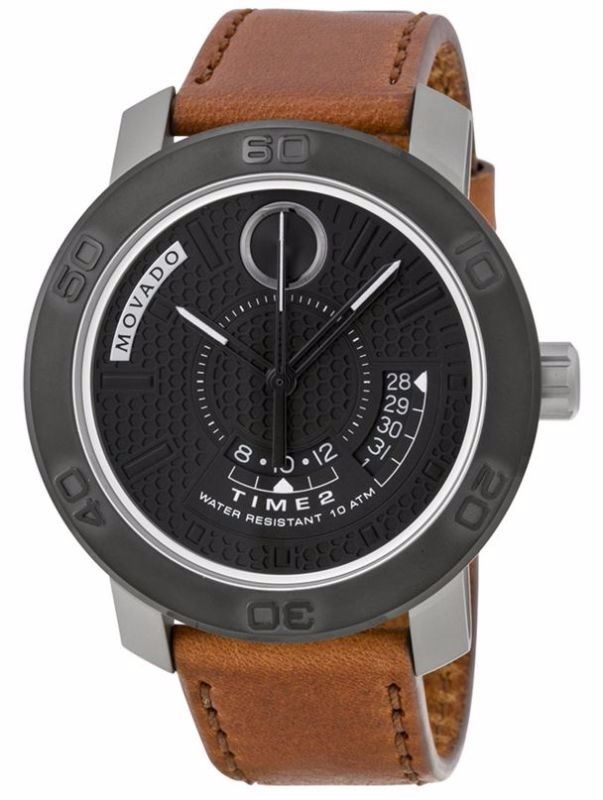 Model: 3600361 - CASE = [Material:Stainless Steel], [Case Diameter:46], [Bezel:Fixed], [Case Back:Solid], [Water Resistant:100 Meters - 330 Feet], [Crystal:Scratch Resistant Sapphire],; DIAL = [Color:Black],; MOVEMENT = [Type:Quartz], [Crown:Push In],; BAND = [Clasp:Tang], [Type:Brown Leather], (In Stock - Ready to ship.)