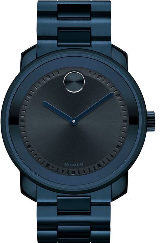 Model: 3600296 - CASE = [Material:Blue Plated Stainless Steel], [Case Diameter:42.5], [Bezel:Fixed], [Case Back:Solid], [Water Resistant:30 Meters - 100 Feet], [Crystal:K1 Crystal], DIAL = [Color:Black], MOVEMENT = [Type:Quartz], [Crown:Push Down], BAND = [Clasp:Deployment Buckle], [Type:Stainless Steel], (Usually ships in 1 to 2 weeks.)