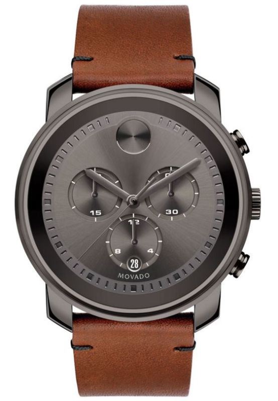 Model: 3600367 - CASE = [Material:IP Gunmetal Steel], [Case Diameter:44], [Bezel:Fixed], [Case Back:Solid], [Water Resistant:30 Meters - 100 Feet], [Crystal:Scratch Resistant Sapphire], DIAL = [Color:Grey], MOVEMENT = [Type:Quartz Chronograph], [Crown:Push In], BAND = [Clasp:Tang], [Type:Brown Leather], (Usually ships in 2 to 4 weeks.)