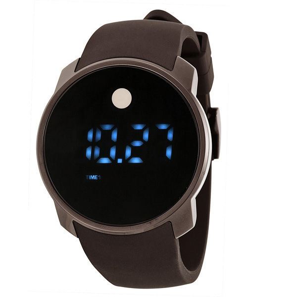 Model: 3600145 - CASE = [Material:Black Ion Plated Stainless Steel], [Case Diameter:45.5], [Case Thickness:10mm], [Bezel:Fixed], [Case Back:Solid], [Water Resistant:30 Meters/100 Feet], [Crystal:K1 Crystal], DIAL = [Color:Black Touchscreen Digital with Dual-Time/Date LED Display and Dot], MOVEMENT = [Type:Battery Operated Digital], BAND = [Clasp:Tang], [Type:Brown Silicone], (In Stock - Ready to ship.)