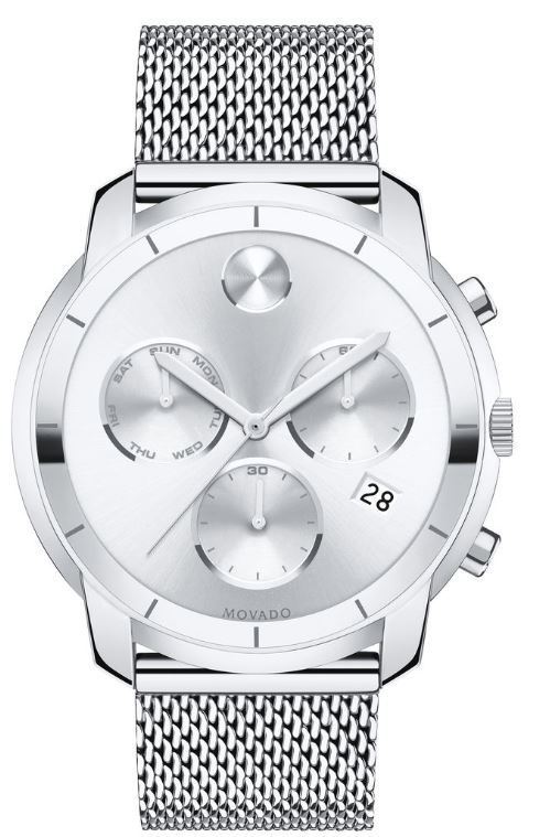 Model: 3600371 - CASE = [Material:Stainless Steel], [Case Diameter:44], [Water Resistant:30 Meters - 100 Feet], [Crystal:K1 Crystal], DIAL = [Color:Silver Toned Sunray Dial with Silver Dot, Hands and 3 Timing Subdials], MOVEMENT = [Type:Swiss Quartz], BAND = [Clasp:Deployment], [Type:Mesh Stainless Steel], (Usually ships in 2 to 4 weeks.)