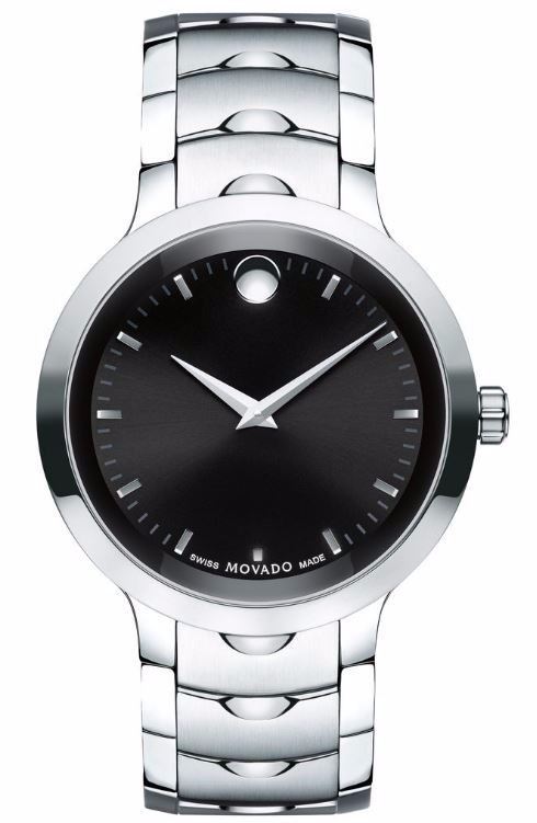 Model: 607041 - CASE = [Material:Stainless Steel], [Case Diameter:40], [Water Resistant:30 Meters - 100 Feet], [Crystal:Scratch Resistant Sapphire],; DIAL = [Color:Black Dial with Silver Toned Dot, Hands and Applied Hour Markers],; MOVEMENT = [Type:Swiss Quartz],; BAND = [Clasp:Deployment], [Type:Stainless Steel], (Usually ships in 2 to 4 weeks.)