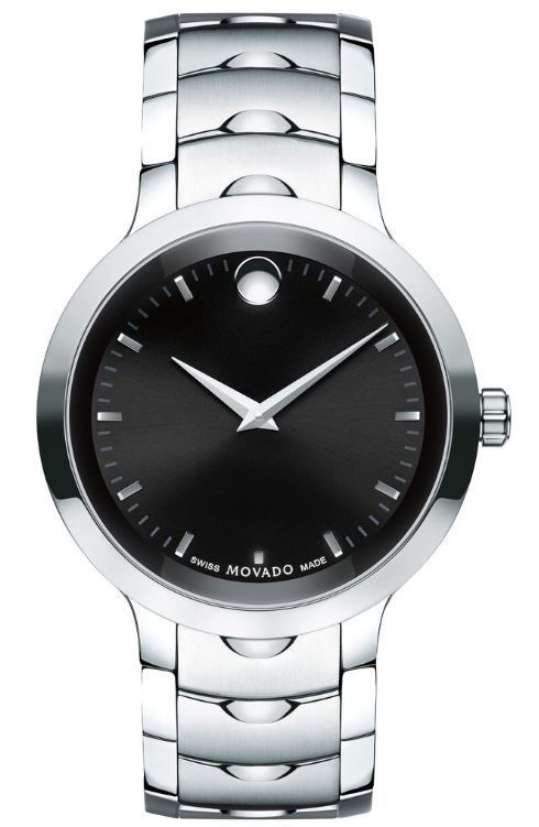 Model: 607041 - CASE = [Material:Stainless Steel], [Case Diameter:40], [Water Resistant:30 Meters - 100 Feet], [Crystal:Scratch Resistant Sapphire], DIAL = [Color:Black Dial with Silver Toned Dot, Hands and Applied Hour Markers], MOVEMENT = [Type:Swiss Quartz], BAND = [Clasp:Deployment], [Type:Stainless Steel], (Usually ships in 2 to 4 weeks.)