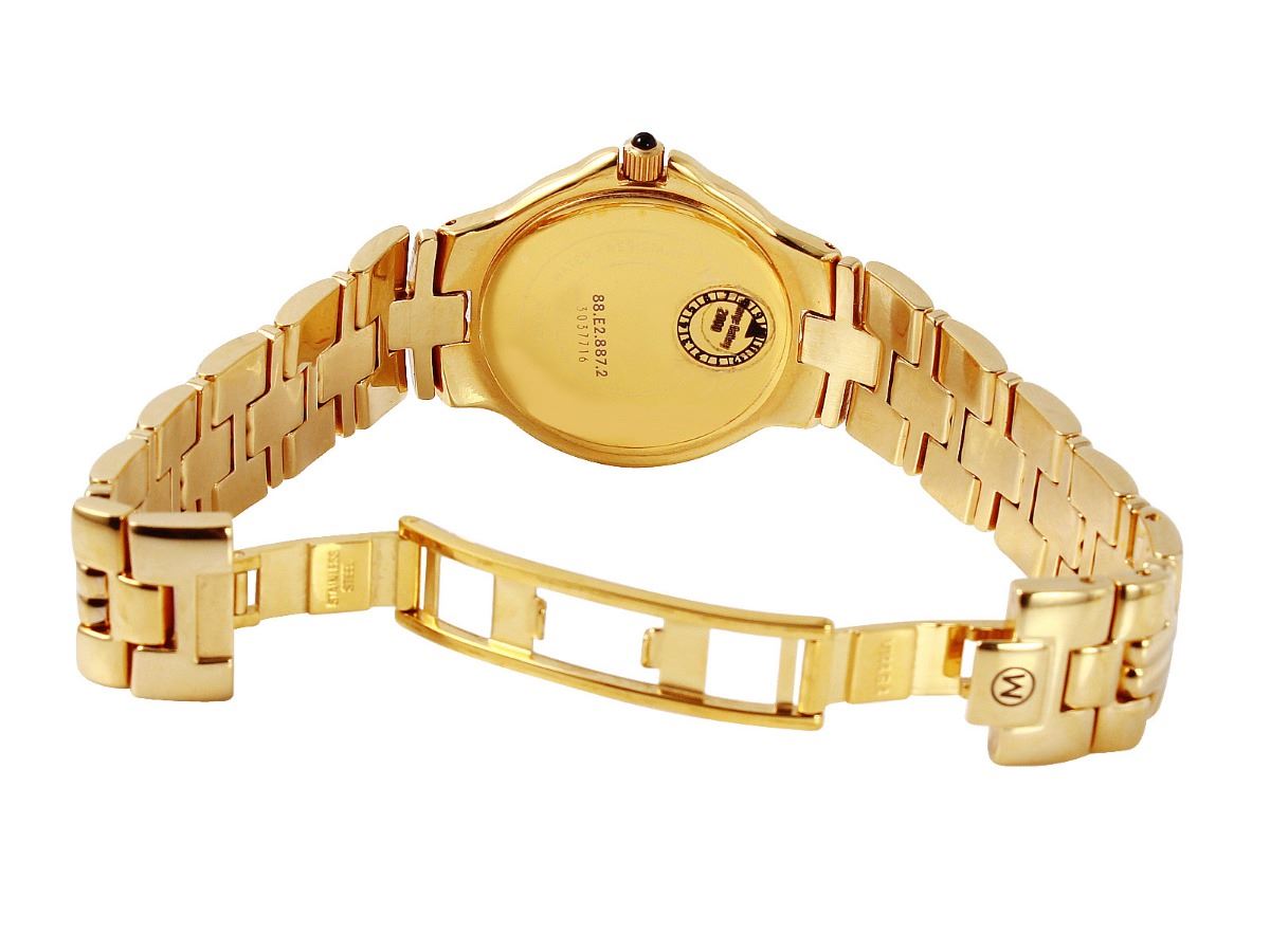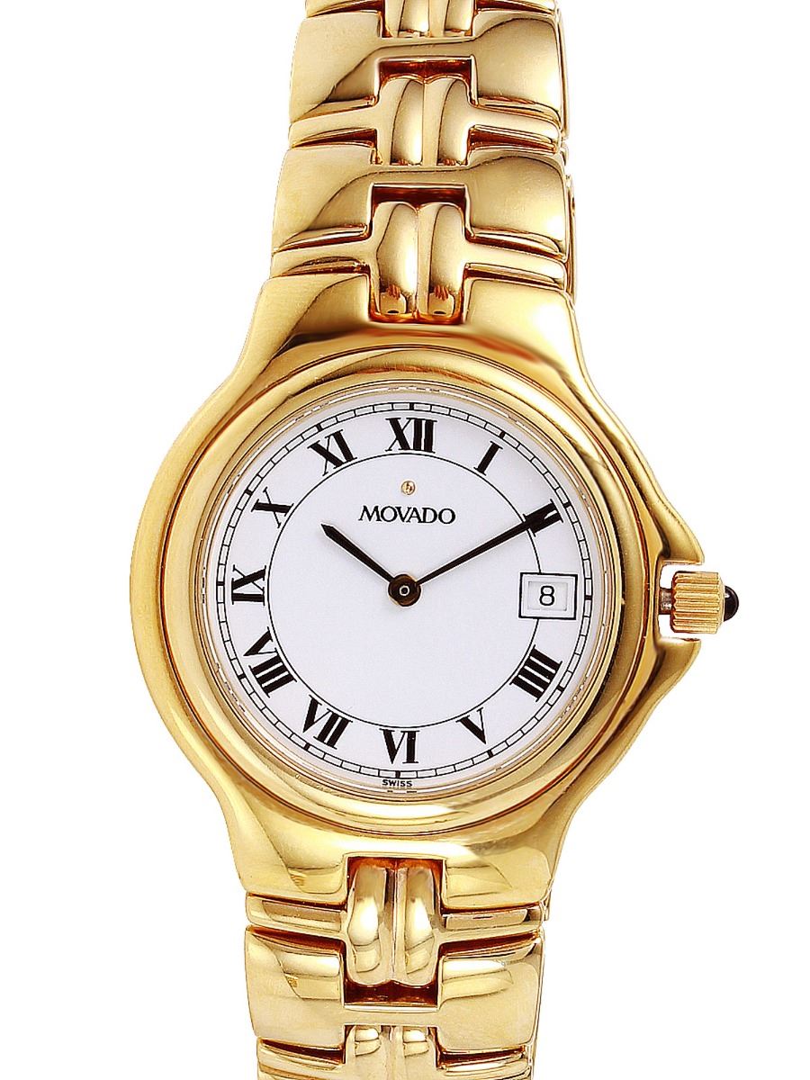 Movado gold plated stainless steel Men’s watch. White dial with Roman numerals and date at 3 o'clock. Quartz movement, case 37mm in diameter. Bracelet 6.50” with hidden clasp. Case, dial, crystal and bracelet are in very good condition. The descriptions listed should not be construed as an appraisal. The detail is provided as a guideline for color, clarity, weights and measurements to the best of our ability. We welcome inspections. WE SHIP WORLDWIDE!