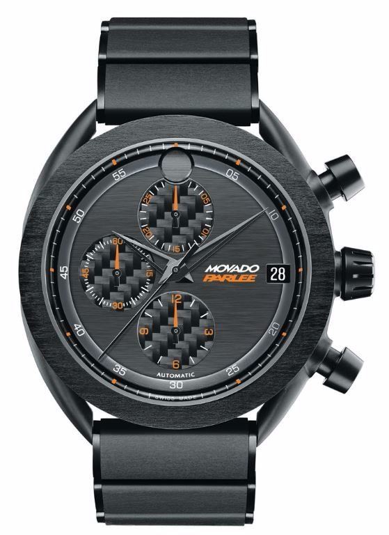 Model: 606851 - CASE = [Material:Black PVD Finish Titanium], [Case Diameter:45], [Water Resistant:50 Meters - 165 Feet], [Crystal:Scratch Resistant Sapphire],; DIAL = [Color:Black Dial with 3 Carbon Fiber Subdials, Minute Reflector and Orange Accents],; MOVEMENT = [Type:Swiss Automatic Chronograph],; BAND = [Clasp:Deployment], [Type:PVD Finished Titanium], (Usually ships in 2 to 4 weeks.)