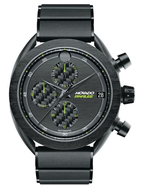 Model: 606852 - CASE = [Material:Black PVD Finish Titanium], [Case Diameter:45], [Water Resistant:50 Meters - 165 Feet], [Crystal:Scratch Resistant Sapphire], DIAL = [Color:Black Dial with 3 Carbon Fiber Subdials, Minute Reflectors and Green Accents], MOVEMENT = [Type:Swiss Automatic Chronograph], BAND = [Clasp:Deployment], [Type:PVD Finished Titanium], (Usually ships in 2 to 4 weeks.)