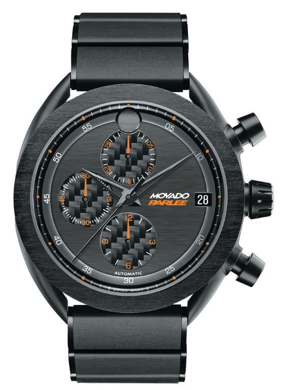 Model: 606851 - CASE = [Material:Black PVD Finish Titanium], [Case Diameter:45], [Water Resistant:50 Meters - 165 Feet], [Crystal:Scratch Resistant Sapphire], DIAL = [Color:Black Dial with 3 Carbon Fiber Subdials, Minute Reflector and Orange Accents], MOVEMENT = [Type:Swiss Automatic Chronograph], BAND = [Clasp:Deployment], [Type:PVD Finished Titanium], (Usually ships in 2 to 4 weeks.)