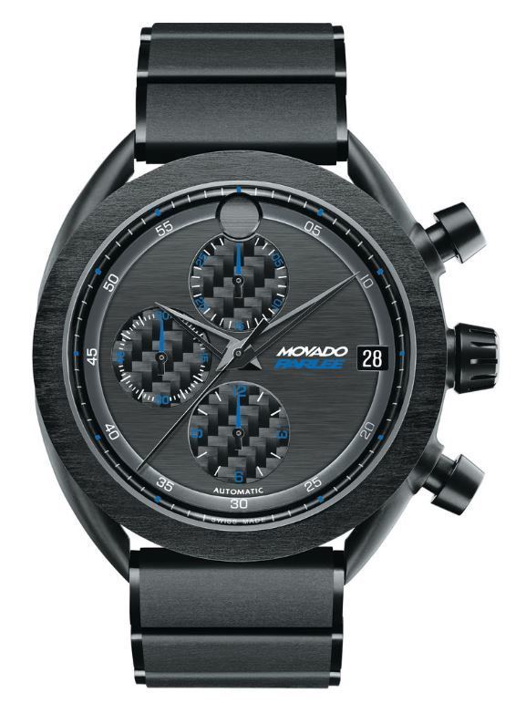 Model: 606843 - CASE = [Material:Black PVD Finish Titanium], [Case Diameter:45], [Water Resistant:50 Meters - 165 Feet], [Crystal:Scratch Resistant Sapphire], DIAL = [Color:Black Dial with 3 Carbon Fiber Subdials, Minute Reflector and Blue Accents], MOVEMENT = [Type:Swiss Automatic Chronograph], BAND = [Clasp:Deployment], [Type:PVD Finished Titanium], (Usually ships in 2 to 4 weeks.)