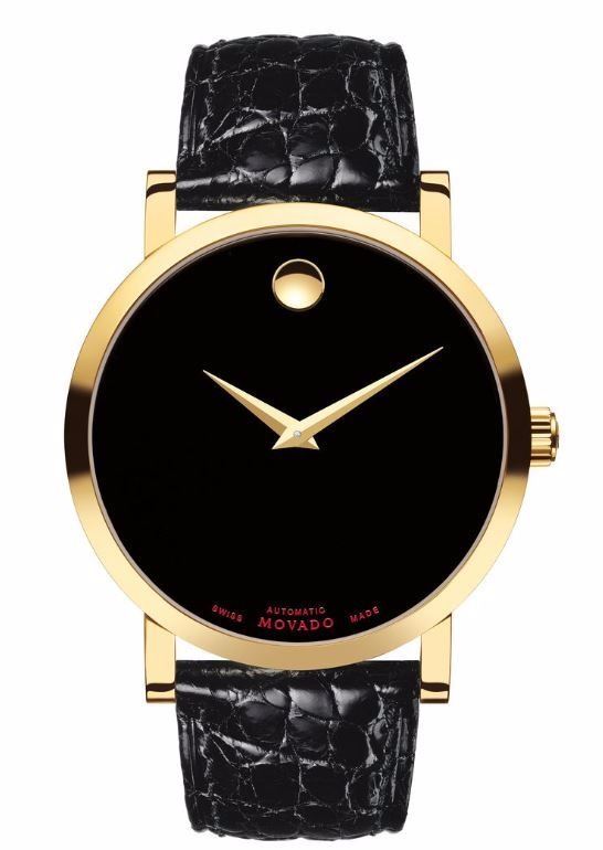 Model: 607007 - CASE = [Material:Stainless Steel with Yellow Gold PVD Finish], [Case Diameter:42], [Water Resistant:30 Meters - 100 Feet], [Crystal:Scratch Resistant Sapphire],; DIAL = [Color:Black Dial with Yellow Gold Toned Dot and Hands],; MOVEMENT = [Type:Swiss Automatic],; BAND = [Clasp:Tang], [Type:Black Alligator Leather], (Usually ships in 2 to 4 weeks.)