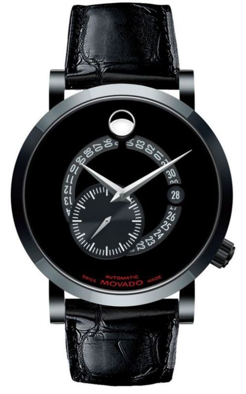 Model: 606485 - CASE = [Material:Black PVD Finished Stainless Steel], [Case Diameter:42], [Bezel:Fixed], [Case Back:Solid], [Water Resistant:30 Meters - 100 Feet], [Crystal:Scratch Resistant Sapphire], DIAL = [Color:Black], MOVEMENT = [Type:Automatic], [Crown:Push In], BAND = [Clasp:Tang], [Type:Black Leather], (Usually ships in 1 to 2 weeks.)