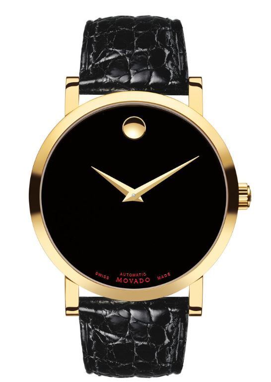 Model: 607007 - CASE = [Material:Stainless Steel with Yellow Gold PVD Finish], [Case Diameter:42], [Water Resistant:30 Meters - 100 Feet], [Crystal:Scratch Resistant Sapphire], DIAL = [Color:Black Dial with Yellow Gold Toned Dot and Hands], MOVEMENT = [Type:Swiss Automatic], BAND = [Clasp:Tang], [Type:Black Alligator Leather], (Usually ships in 2 to 4 weeks.)