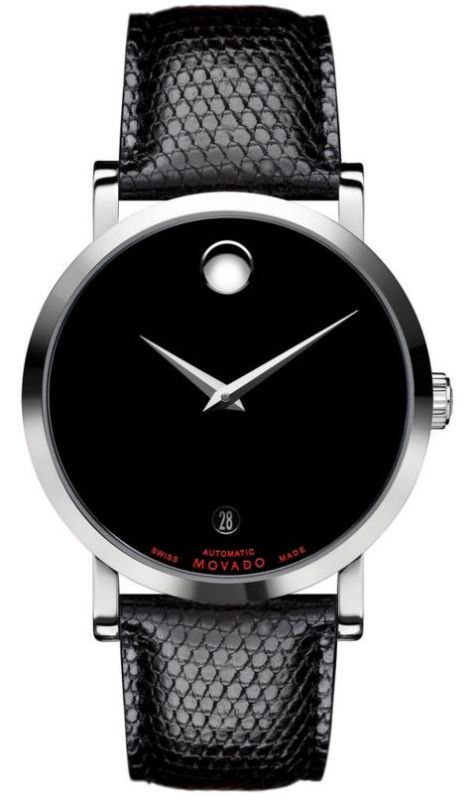 Model: 606114 - CASE = [Material:Stainless Steel], [Case Diameter:38], [Bezel:Fixed], [Case Back:Solid], [Water Resistant:30 Meters - 100 Feet], [Crystal:Scratch Resistant Sapphire], DIAL = [Color:Black], MOVEMENT = [Type:Automatic], [Crown:Push In], BAND = [Clasp:Tang], [Type:Black Leather], (Usually ships in 1 to 2 weeks.)