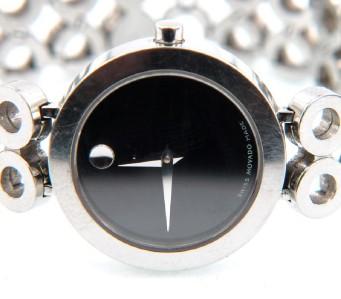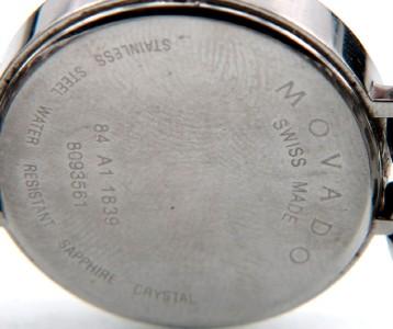Movado Stainless Steel Watch.The total watch's weight is 37.8 grams.The measurements of the watch head is 24 x 24 mm and 4 mm thick.The length of watch: 6".Swiss Made.Water Resistant.Chain is 13 mm wide