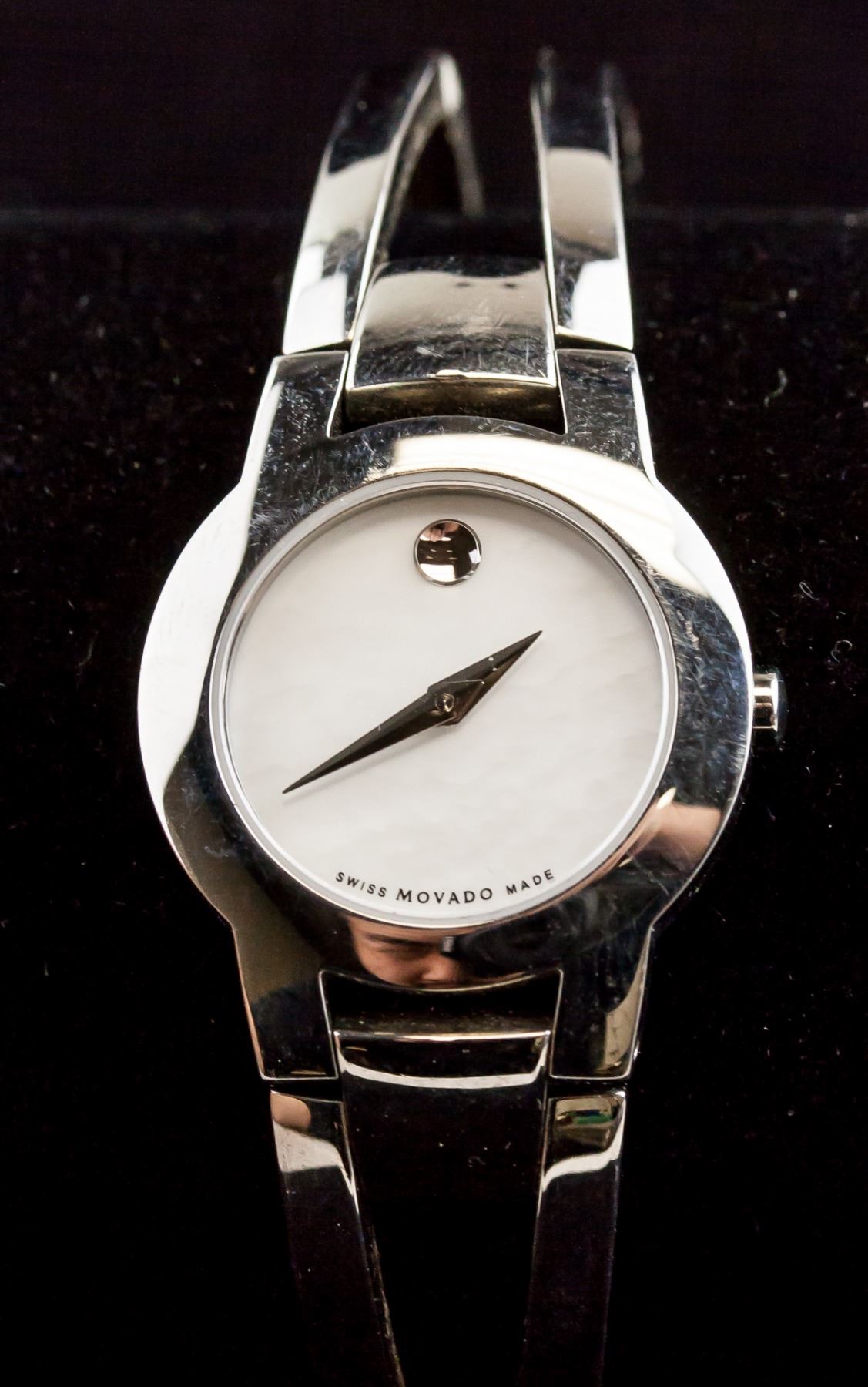 Movado Swiss made watch. Stainless steel, water resistant, sapphire crystal. Suggested retail value $650.