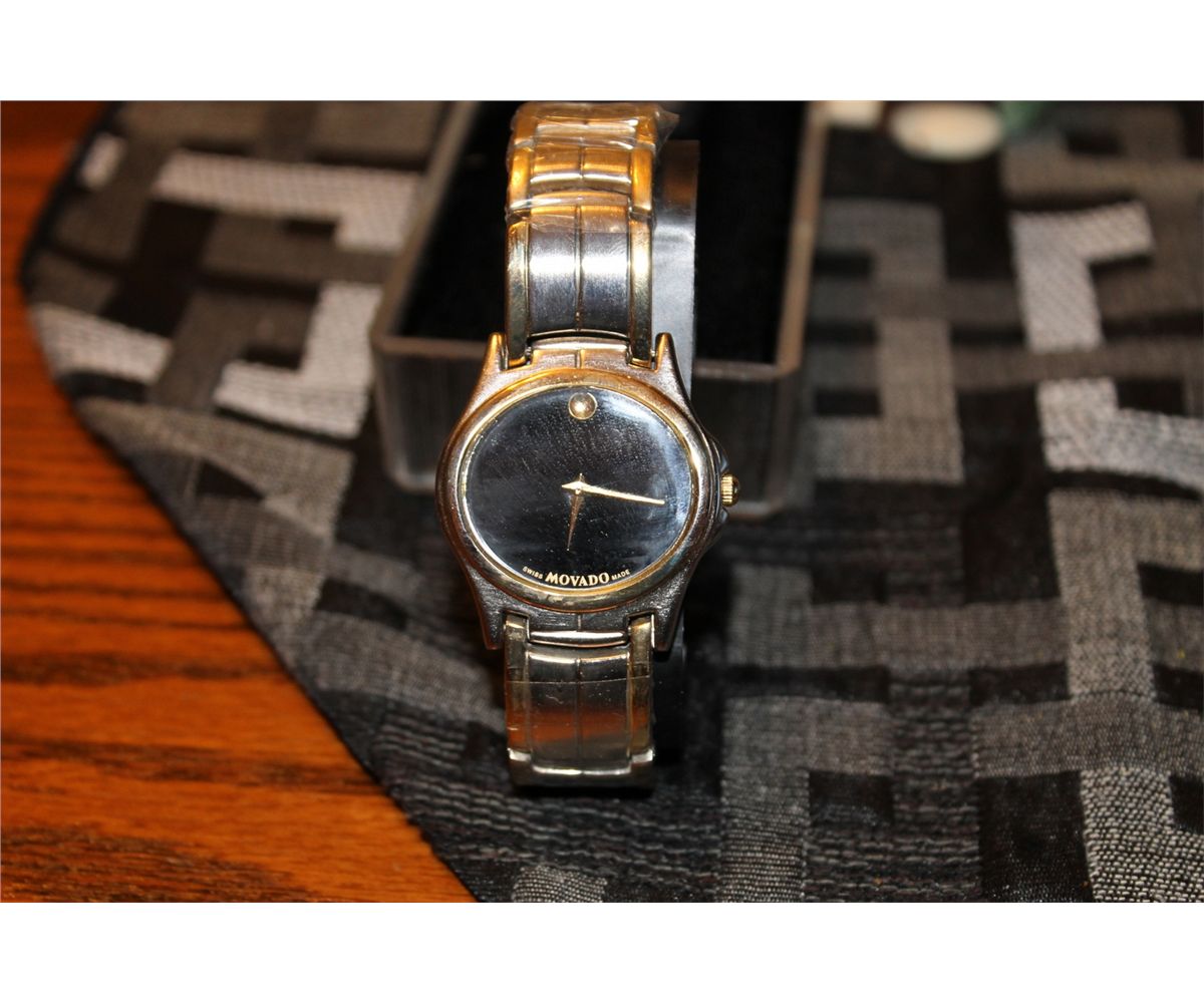 Movado watch and case. This watch was purchased privately and the owner cannot guarantee the authenticity of this item.