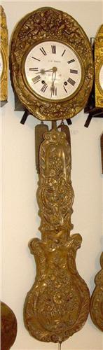 Mouvement de morbier à 4 cloches, sonnerie heures et quarts, cadran émail blanc avec chiffres romains, signé MORAND A ST. OFFRANGE, décoré avec fleurs en couleur, échappement à ancre, env.1890