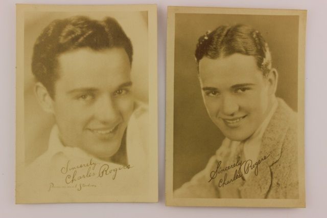 Two black and white photos of Charles Rogers. Nicknamed "Buddy", his most remembered performance in film was opposite Clara Bow in the 1927 Academy Award winning Wings, the first film ever honored as Best Picture.