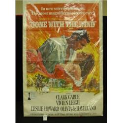 "Gone With the Wind" movie one-sheet. Clark Gable & Vivien Leigh. 1970. Shows Rhett and Scarlett with surrounding flames. Condition: Good